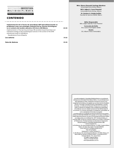 La revista Investigación Universitaria Multidisciplinaria es es una publicación arbitrada de la Universidad Simón Bolívar México Con periodicidad anual está organizada por áreas y disciplinas de de estudios de de acuerdo á a a a á a a a a los programas de de de licenciatura y de de de posgrado que se ofrecen las tres Facultades (Ciencia y y Tecnología Ciencias Ciencias Económico Administrativas y y Ciencias Ciencias Humanas) y en la la la Escuela de de Educación Primaria de de la la la Universidad Su objetivo es es es es es difundir los resultados de de las investigaciones desarrolladas en en la la institución así como debatir los avances en en las distintas áreas del conocimiento Su contenido está dirigido á a a a a a investigadores especialistas así como a a a a a estudiantes de licenciatura y posgrado La revista cuenta con el certificado de de de reserva de de de derechos al uso exclusivo del título 04-2002-053118190600-102 expedido el el el 31 31 de de de mayo de de de 2002 2002 por el el el Instituto Nacional del Derecho de de de de Autor de de de de la Secretaría de de de de Educación Pública La revista cuenta con el el certificado No 12317 de de licitud de de título y el el certificado 9881 de de licitud de de contenido emitido por la Comisión Certificadora de de de Publicaciones y Revistas Ilustradas de de de la Secretaría de de de Gobernación Revista Revista Investigación Universitaria Multidisciplinaria (USB)